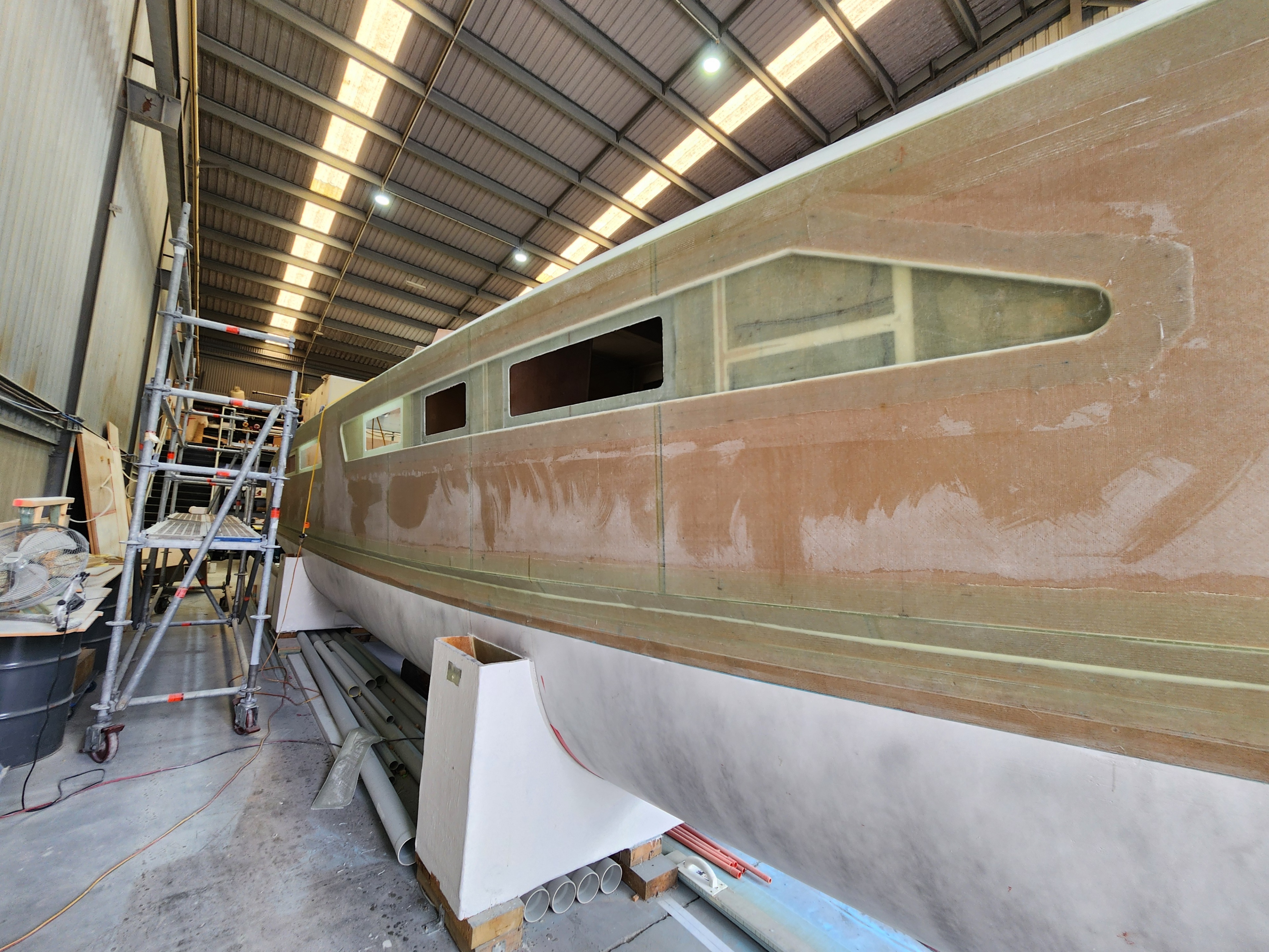 The Schionning design offers similar internal space to a similarly sized production boat, but is far lighter, stiffer and stronger with better waterline beam values and higher power to weight ratio.