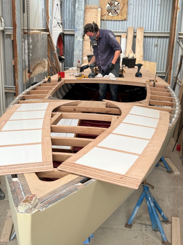 The scope of works included scraping back the hull, removing the cabin and deck, replacing all ribs, new deck framing and restored cabin.
